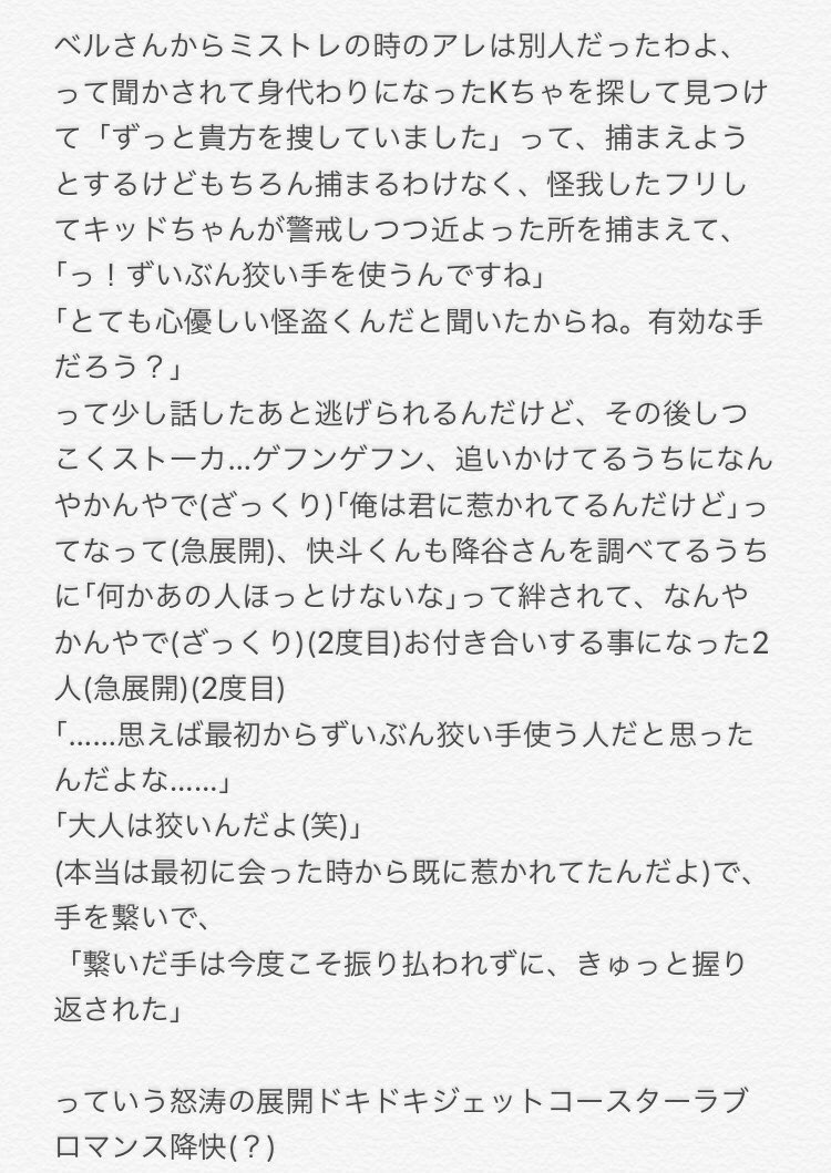 「29歳降谷さん×17歳快斗くん(えっちしてない)」と「39歳降谷さん×27歳快斗くん(えっち済)」の快斗くんが入れ替わったらどうなるんだろうと考え出したら萌え死んだ_(´ω`_*)⌒)_