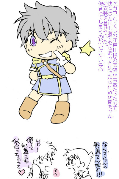 せがくじの衣装に滾って。 絵 2018年06月30日 せがくじの衣装ステキやないか!!とウッカリらくがき。キッド衣装もいいけど折角だから皆と同じシリーズの服が良かったな!って事で。男子みんな衣装カッコいいけど女子衣装もいいよね!って思って快斗さんに女子衣装(蘭ちゃんVr)を着てもらいました!何故・・・とか思ってはいけない(笑) そう、快斗さんが似合ってしまうのがいけない! そして自分で女子衣装も似合っちゃうとか言っちゃう快斗さんが好き(´▽`*) しかしこの後、降谷さんに叱られる(笑) 快斗さん天然だから降谷さんは気が気じゃない(笑) さらにここからの派生でこんなん↓できました。 肌色多め注意です>< 肌色多めって言ってもこの程度なんですけどね(笑) 彼(降谷さん)ジャケットの快斗さんでした(*´▽`*)/ PR
