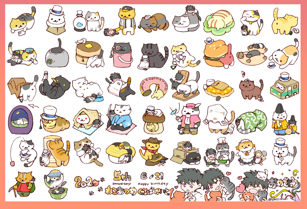 GIFアニメに使った絵 絵 2020年07月27日 ※ケモ化。ちぢんでます。 ねこあつめの5周年と快斗くんおたおめ!って事で作ったGIFアニメに使った絵です(*´ω`*) 最初ツイッターに上げたヤツがちょっと色々気になる所もあって後で塗りなおしたりして、新しいのは支部とポイピクにあげてきました。(この絵はポイピクの方にもあげてあります) とにかく、ねこあつめのネコちゃん達と快斗くんに絡んで欲しかった(笑)